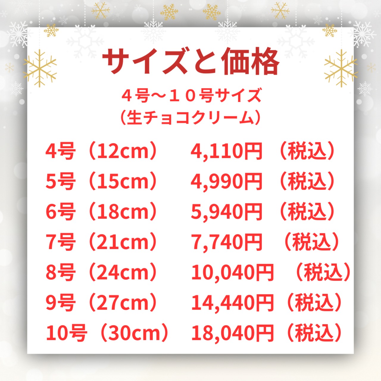 ・クリスマスケーキは予約台数に達した場合は受付を締め切らせていただきます。