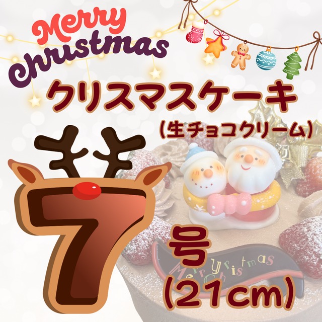 クリスマスケーキ(生チョコクリーム) 7号(21cm)〜10号(30cm) ふわふわのスポンジ生地に、甘酸っぱいいちごと濃厚な生チョコクリームをたっぷりサンドしました。 いちごのフレッシュな風味と甘さ控えめな生チョコクリームが相性抜群のケーキです。 素材の美味しさを生かした上品で優しい味わいのデコレーションケーキです。 シンプルで愛らしいクリスマスケーキに仕上げました。 ◆──────────────◆ アレルゲン8品目:卵・小麦粉・乳 ◆──────────────◆ ※スリムローソク 5本付き ◼️サイズ 7号(21cm)8〜12名様 〜10号(30cm)18名様〜 ◼️フルーツ(飾り・サンド) いちご ※飾りが一部変更する場合がございます。 ※写真は、5号サイズになります。 ◆店頭受け取りのご予約となります。 ※ ケーキの配送は行っておりません。 ◆商品のお渡し期間◆ 2025年12月20日(土)~12月25日(木) ※22日(月)は、休店日のため、ご予約は承っておりません。何卒ご了承くださいませ。 ◆クリスマスケーキのご注文について◆ 店頭受付・ Web受付ともに「事前支払い」とさせていただきます。 ◆クリスマスケーキご注文の際の注意事項◆ ・商品の性質上、ご注文後(決済完了後)のご注文商品の変更・キャンセルはお受けできませんので予めご了承ください。 ・受取日の営業時間内にご来店いただけない場合はキャンセルとさせていただき、返金はいたしかねますので予めご了承ください。 ・受取日の変更については、各日に予約上限数があるため、上限に達していない場合のみ、12月14日(日)までご変更をお受けできます。 上限に達した場合はご変更をお受けできかねますので、予めご了承ください。 ・ケーキの消費期限はお買い上げ当日中でございます。 ・クリスマスケーキは予約台数に達した場合は受付を締め切らせていただきます。 ・天候の影響による農作物の入荷状況、また食材の入荷状況により商品内容が一部変更になる場合がございます。 ・サイズにより使用するフルーツの量など異なるため、写真の印象と異なる場合がございます。 予めご了承ください。 ・保冷剤は全てのお客様に2時間分まで無料でお付けいたしますので、お受け取りの際に店員にお申し付けください。 有料の保冷バックをご購入いただきますと、お持ち歩きが最大4時間まで可能になります。 ※クリスマスケーキのご予約は12月14日(日)までとなります。 ※ご注文の際には、以上の注意事項をご理解ご了承のうえご購入をお願い致します。